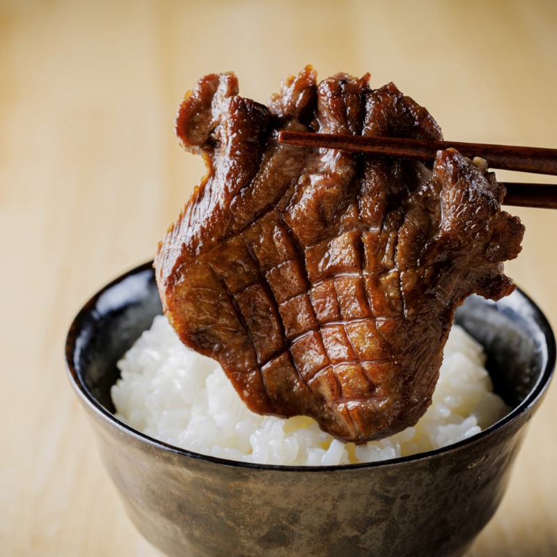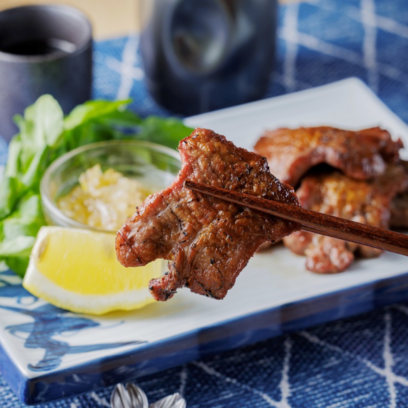 肉の甘味と旨味が特徴のほどよい霜降りのバランスの牛タンは子供から大人まで食べやすく人気。またたけむらの牛タンは臭みがなく食べやすいとご好評をいただいております。是非塩味のみのシンプルな味付けで牛タンの旨味を味わってみてください。